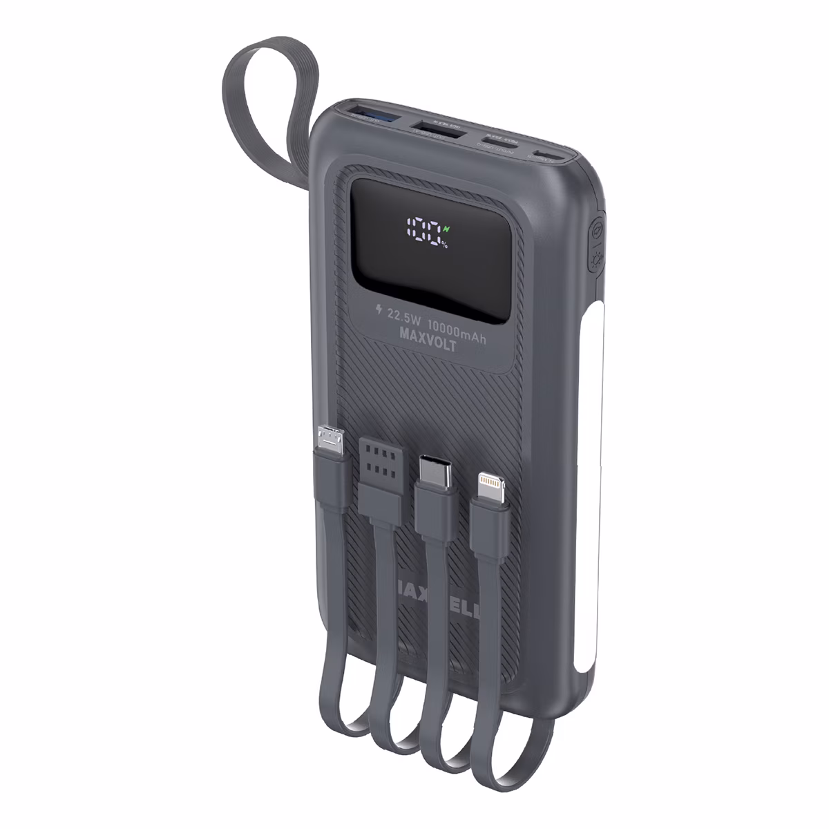 یکی از نقاط قوت اصلی Maxvolt 10K، طراحی چندمنظوره آن در بخش خروجی‌هاست. این پاوربانک به ۳ پورت خروجی مستقل شامل: دو پورت USB-A و یک پورت USB-C مجهز شده و علاوه بر آن، ۳ کابل متصل خروجی نیز دارد: