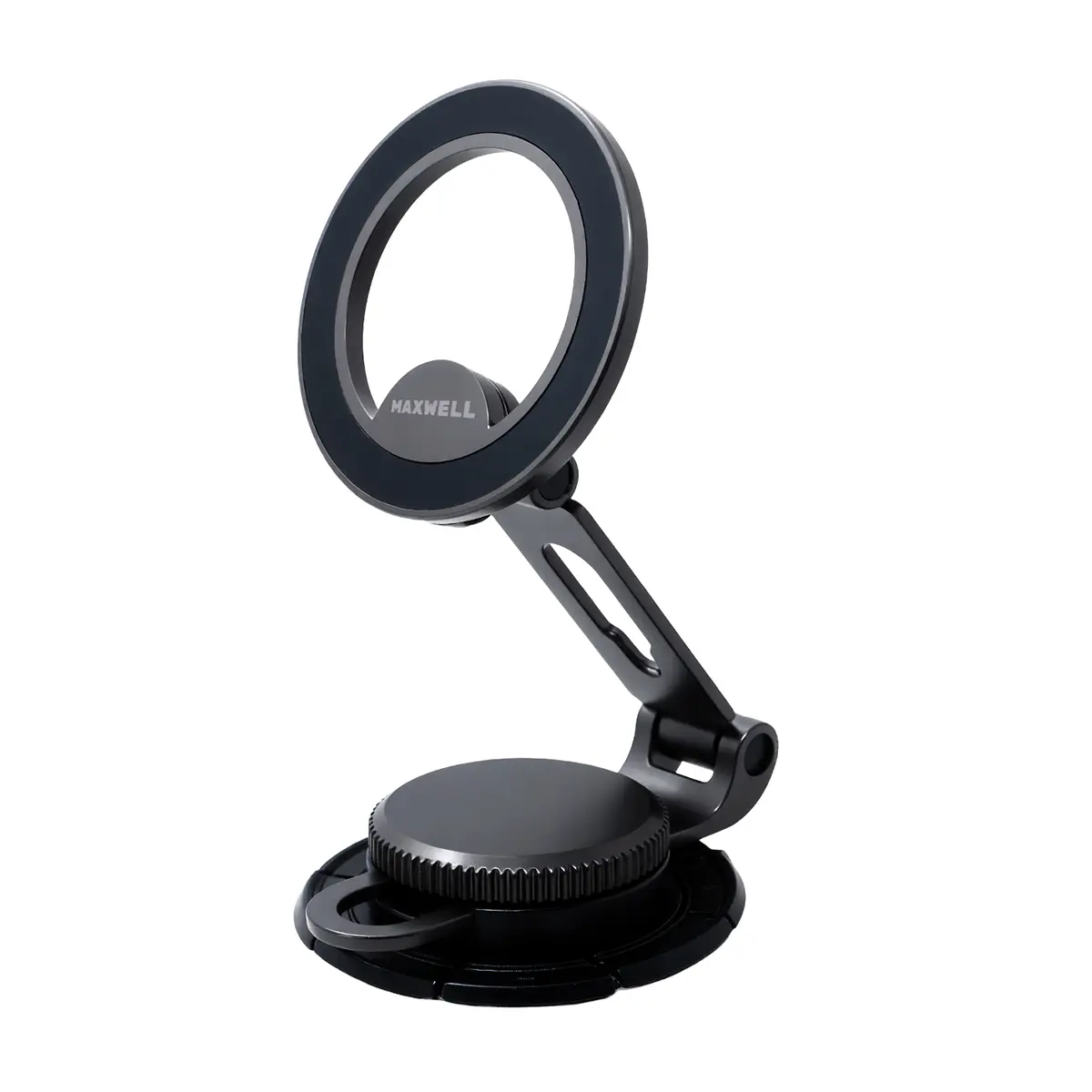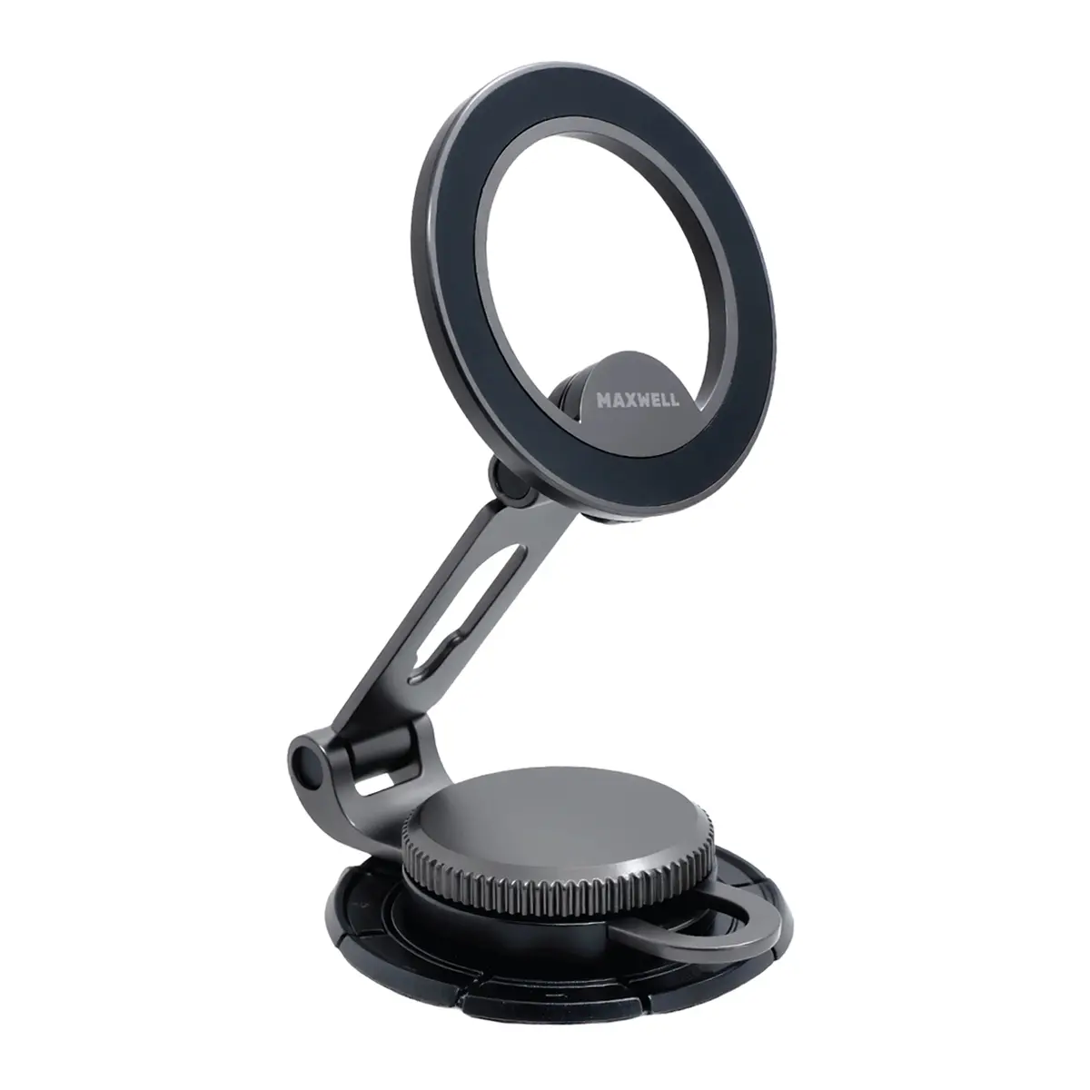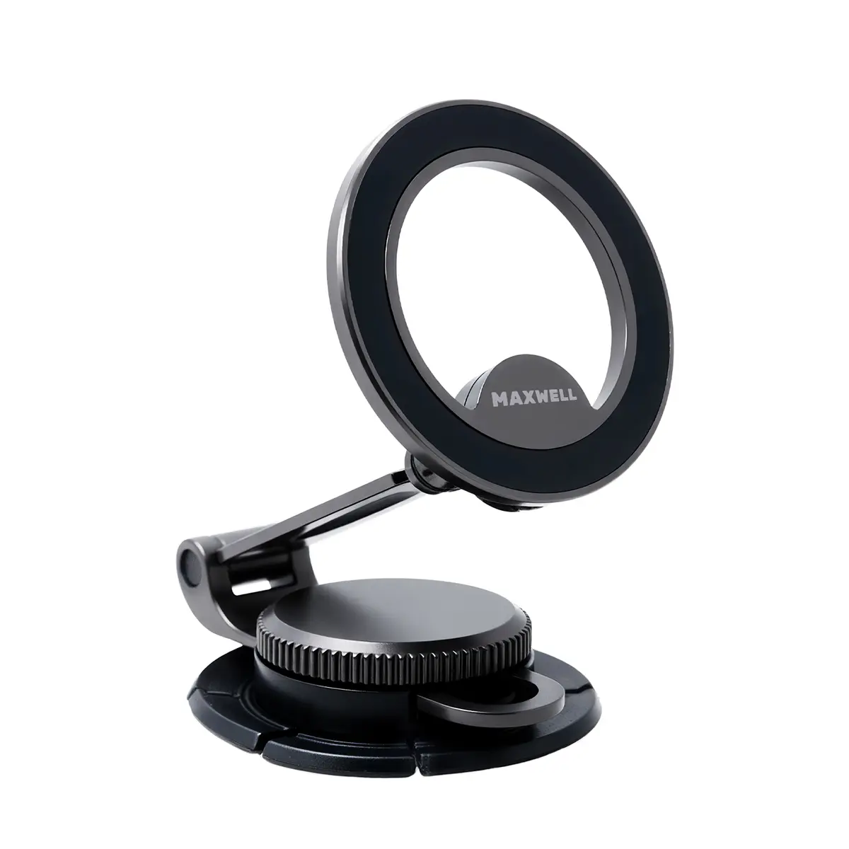 بدنه این هولدر از آلیاژ روی (Zinc Alloy) ساخته شده است. این متریال، استحکام مکانیکی بالا، مقاومت مناسب در برابر فشار و دوام طولانیمدت را تضمین میکند. برند مکسول در طراحی این مدل از یک پایه دوچرخشی (Dual Rotation Base) استفاده کرده است که امکان تنظیم زاویه دید را در جهات مختلف فراهم میسازد و ثبات هولدر را در حالتهای گوناگون حفظ میکند.