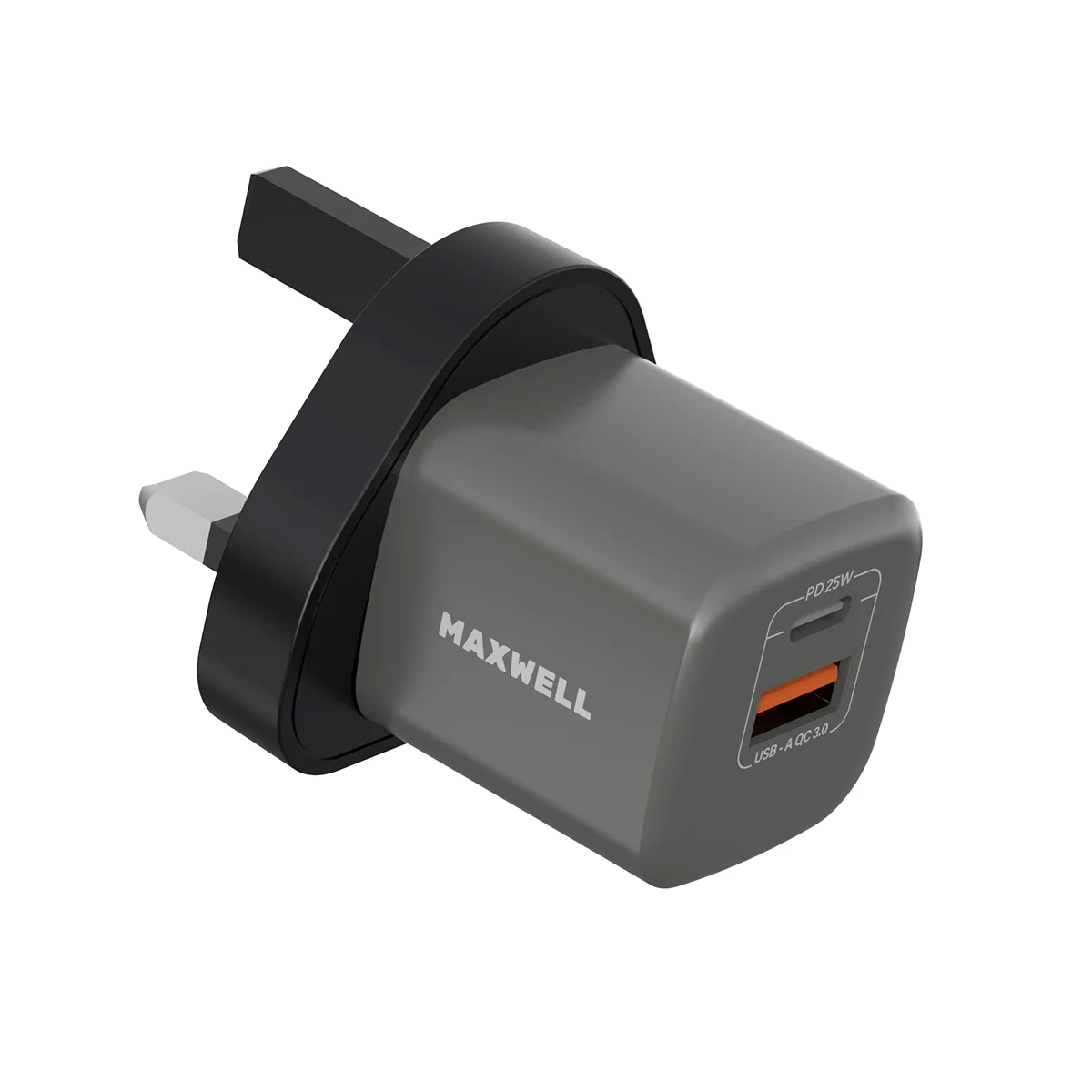 این شارژر با دوشاخه استاندارد UK عرضه شده است. در صورتی که به نسخه دارای دوشاخه EU نیاز دارید، میتوانید مدل شارژر مکسول ChargeMax 25W GaN با پین EU را مشاهده کنید.