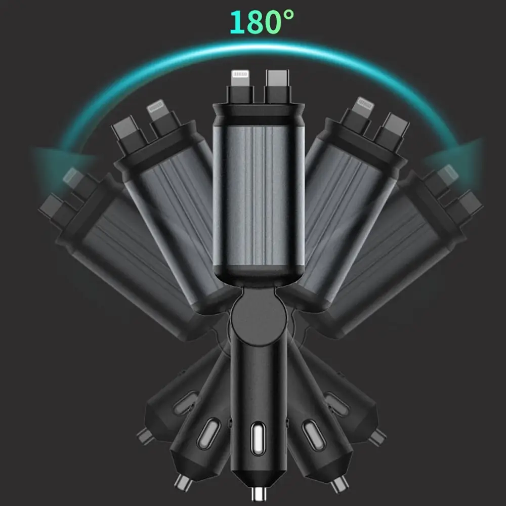 توان خروجی کلی 120 وات، این شارژر فندکی را برای شارژ سریع گوشیهای هوشمند، تبلتها و سایر گجتهای دیجیتال مناسب میسازد. کابل Type-C داخلی از Super Fast Charging تا توان 120 وات پشتیبانی میکند و پورت USB-C نیز خروجی 5V/3A ارائه میدهد. همچنین کابل لایتنینگ و پورت USB-A با خروجی 5V/2.4A برای شارژ ایمن و پایدار دستگاههای اپل و سایر تجهیزات کاربرد دارند.