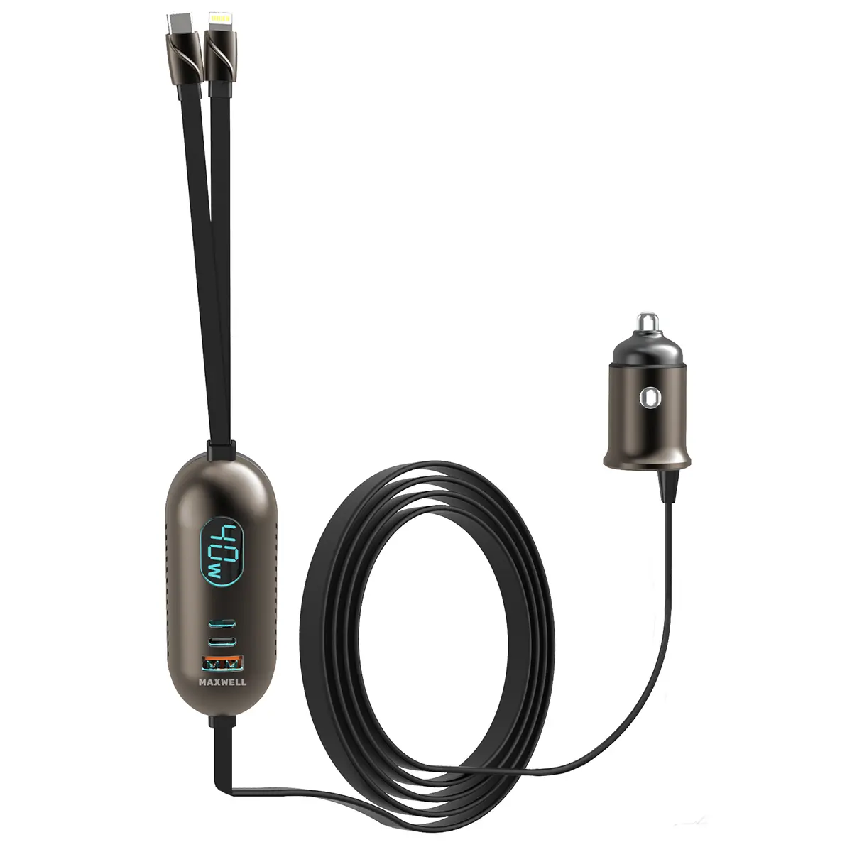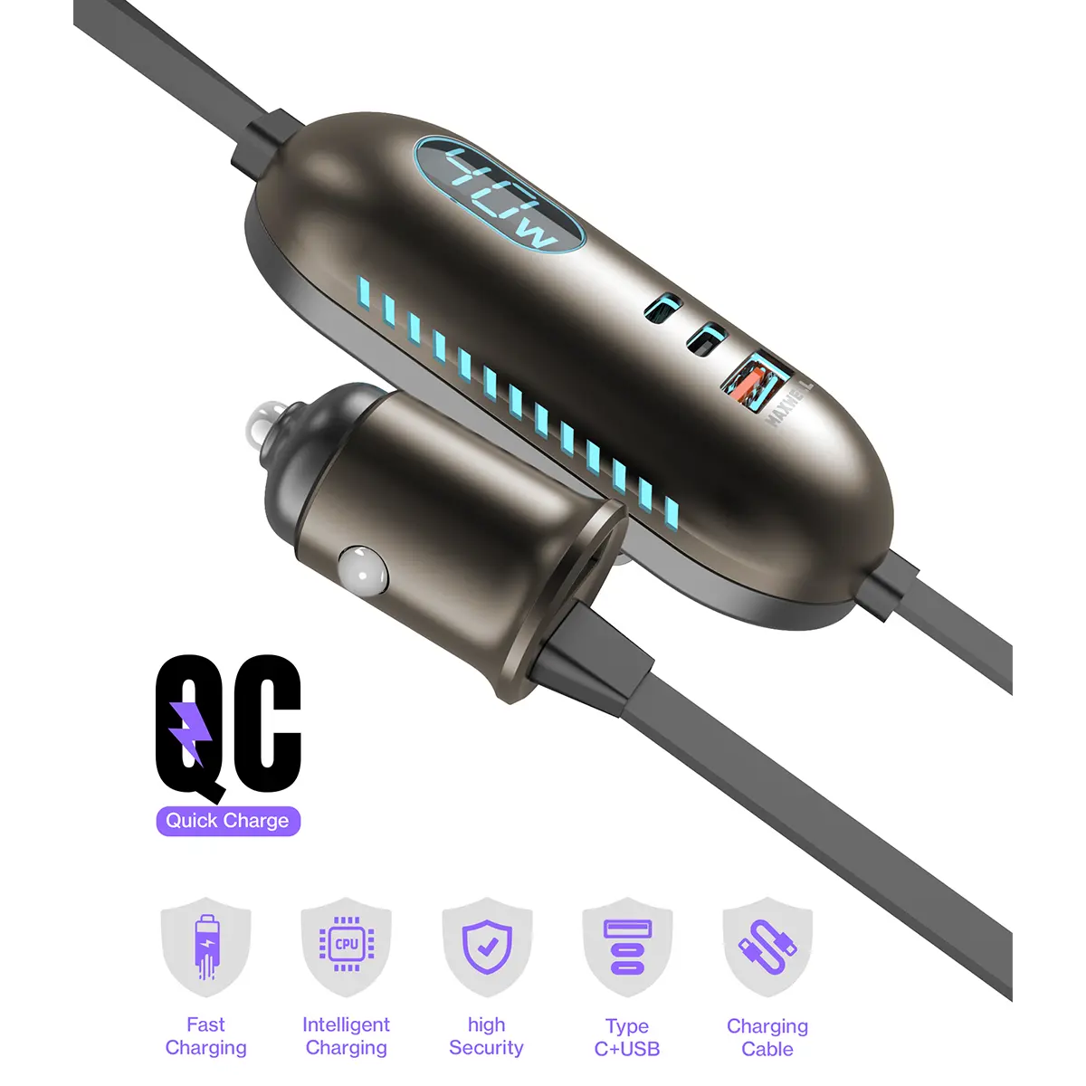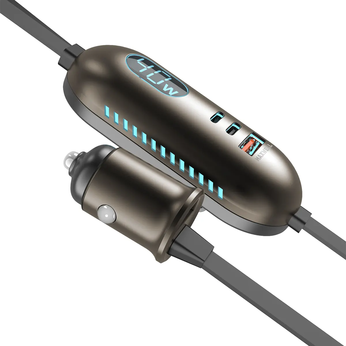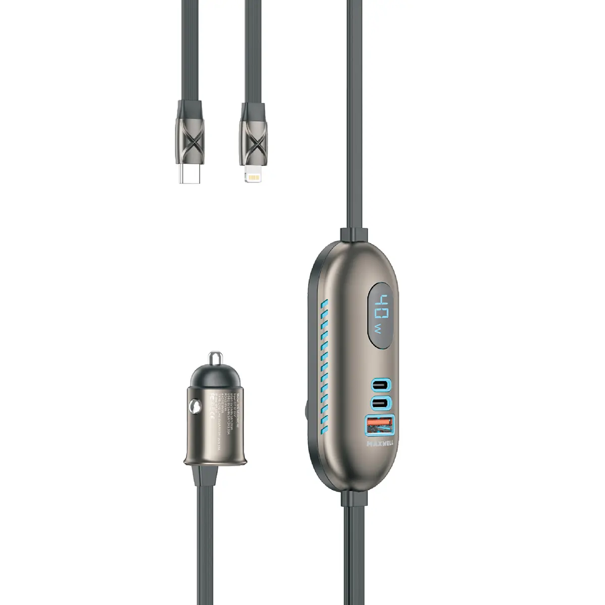 این شارژر فندکی مکسول به نمایشگر LED مجهز شده است که میزان توان خروجی را بهصورت لحظهای نمایش میدهد. این قابلیت امکان بررسی وضعیت شارژ و مدیریت مصرف انرژی را فراهم میکند و کنترل دقیقتری در اختیار کاربر قرار میدهد.