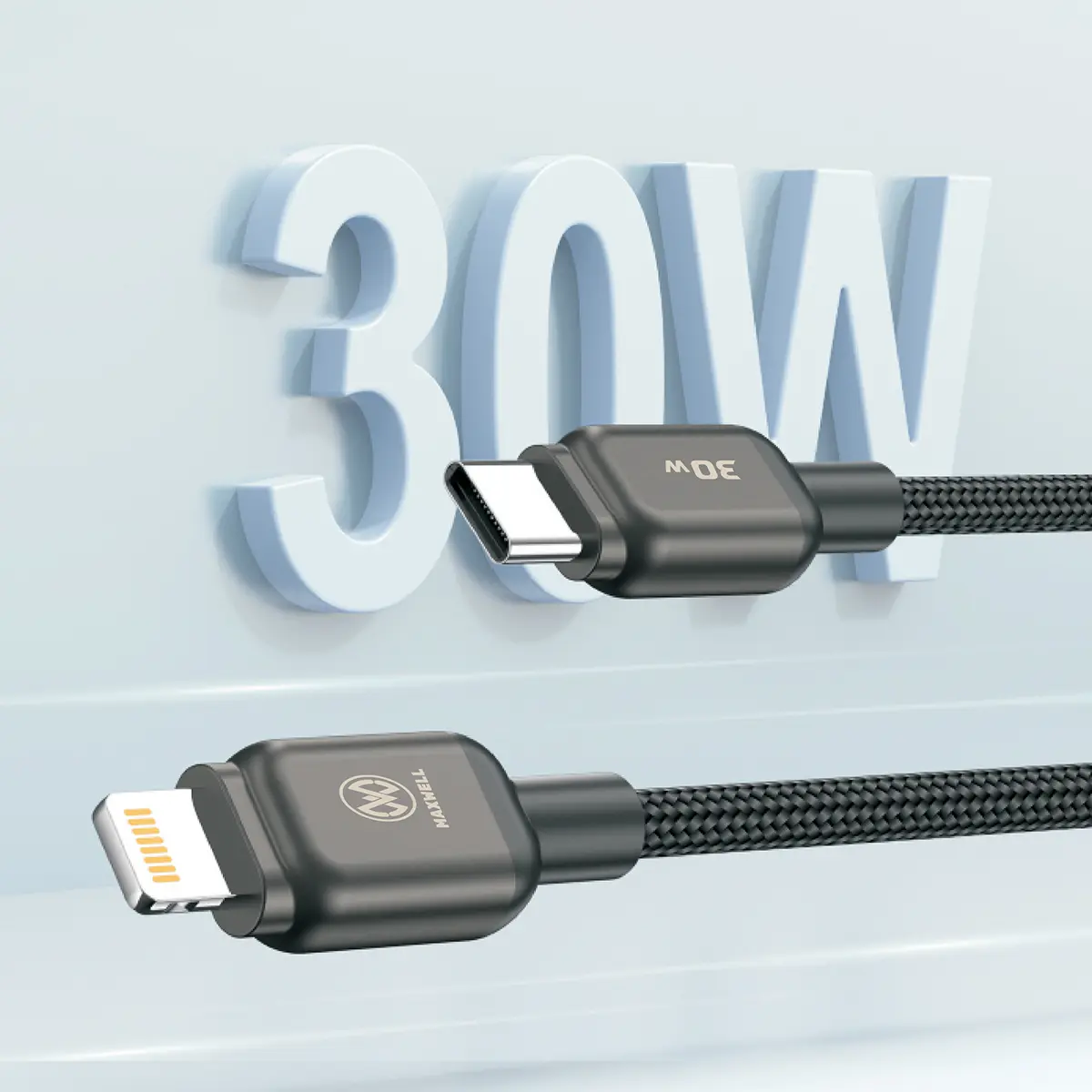 کابل تایپ سی به لایتنینگ Maxwell Thunder Line از توان 30 وات پشتیبانی میکند و امکان شارژ سریع و کارآمد دستگاههای مجهز به پورت لایتنینگ را فراهم میسازد. این کابل با مدلهایی مانند iPhone 14 Pro Max، iPhone 14 و سایر آیفونهای نسل قبل کاملاً سازگار است و جریان برق را بهصورت پایدار و کنترلشده به دستگاه منتقل میکند تا فرآیند شارژ با بیشترین بازده و کمترین اتلاف انرژی انجام شود.