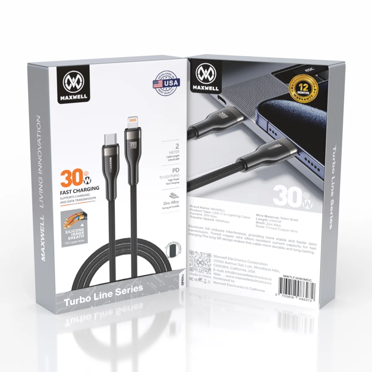 کابل تایپ سی به لایتنینگ مکسول مدل Maxwell Turbo Line