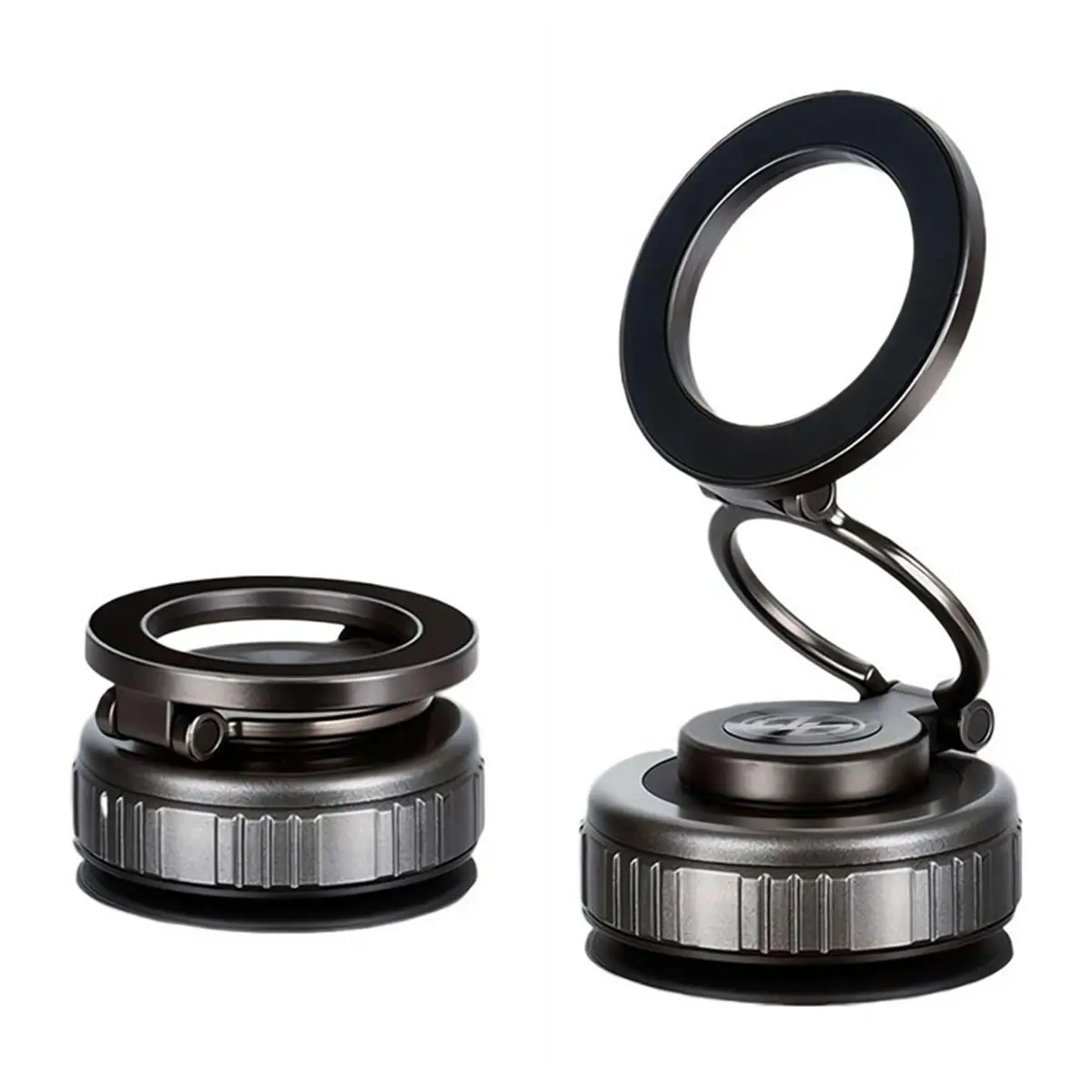 مکانیزم Vacuum Suction تقویتشده بههمراه قفل چرخشی، قدرت مکش بالایی ایجاد میکند که بدون استفاده از چسب، هولدر را بهصورت پایدار روی سطوح مختلف ثابت نگه میدارد. این ساختار امکان جداسازی و جابهجایی سریع را فراهم میکند و هیچگونه اثر یا باقیماندهای روی سطح نصبشده بر جا نمیگذارد.