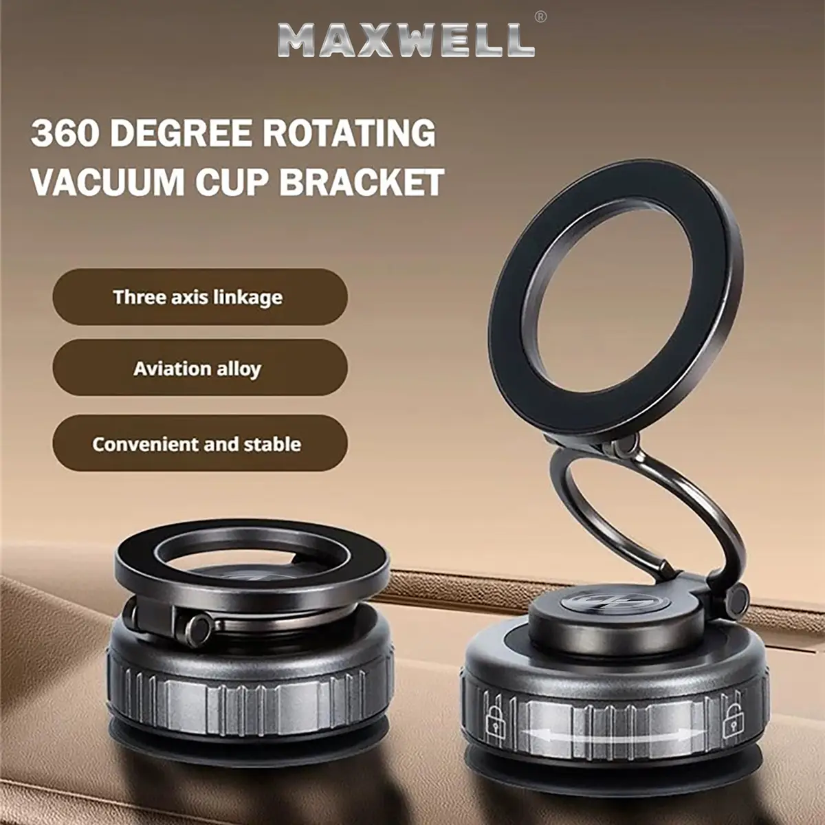 هولدر آهنربایی Maxwell Vacuum Suction یک پایه نگهدارنده حرفهای خودرو است که مکسول آن را با تمرکز بر قدرت اتصال، تنظیمپذیری بالا و دوام طولانیمدت طراحی کرده است. این هولدر از سیستم وکیوم قدرتمند همراه با مکانیزم قفل دستی چرخشی بهره میبرد و اتصال فیزیکی بسیار محکمی را روی سطوح صاف ایجاد میکند.
