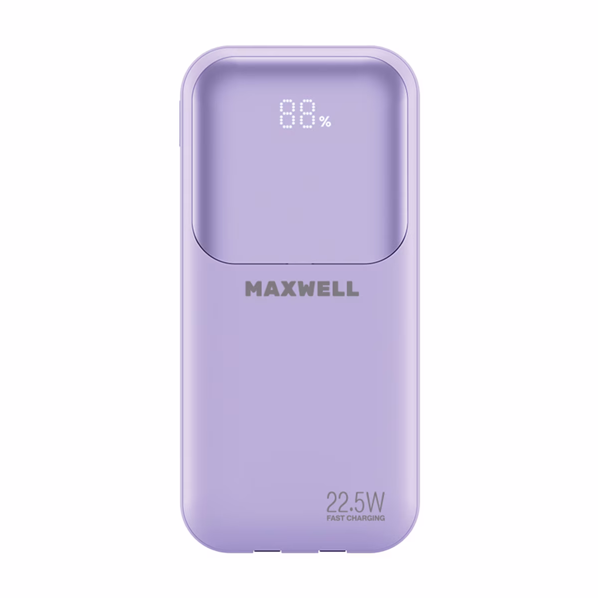 پاوربانک Maxwell Power Max از توان خروجی حداکثر 22.5 وات پشتیبانی میکند و با استانداردهای شارژ سریع از جمله QC 3.0 و PD سازگار است. پورت USB-C این مدل علاوه بر خروجی، بهعنوان ورودی نیز عمل میکند و از شارژ سریع 18 وات برای شارژ خود پاوربانک پشتیبانی میکند؛ که زمان آمادهبهکار شدن آن نسبت به مدلهای معمولی کوتاهتر است.